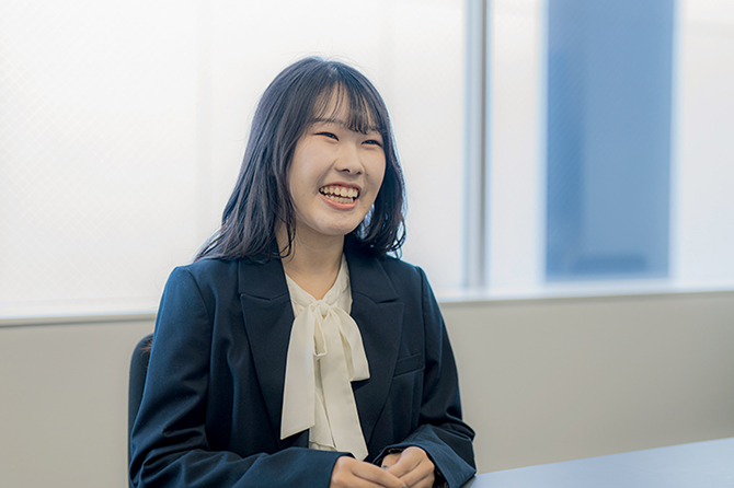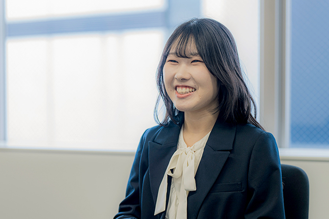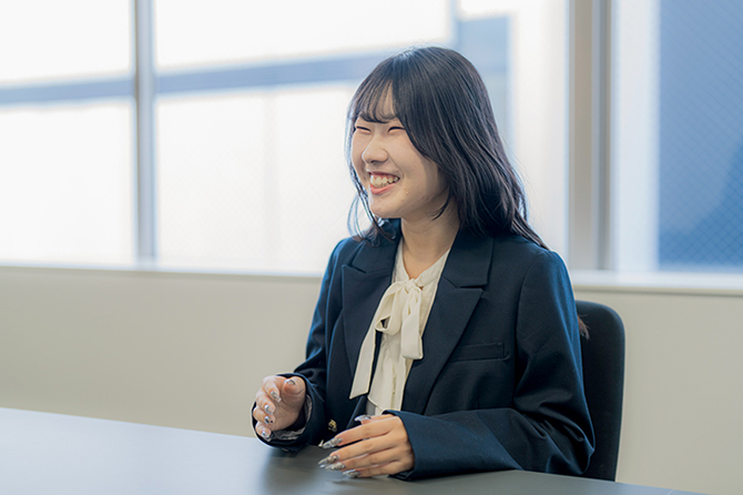 就職活動で化粧品業界を目指したきっかけは、私自身の肌の悩みからです。コロナ禍のとき、マスクの着用などが原因で皮膚科に通うほどひどい肌荒れになってしまい、そのときにスキンケアを変えたことで徐々に肌が改善に向かっていったんです。「きれいな肌」が自分自身に自信を与えてくれることを実感し、それを私の卒業論文のテーマに選びました。ヴァーナルへの入社を決めた理由も、まさに「素肌美」の追求を通してお客さまに愛され、成長してきた企業だからです。